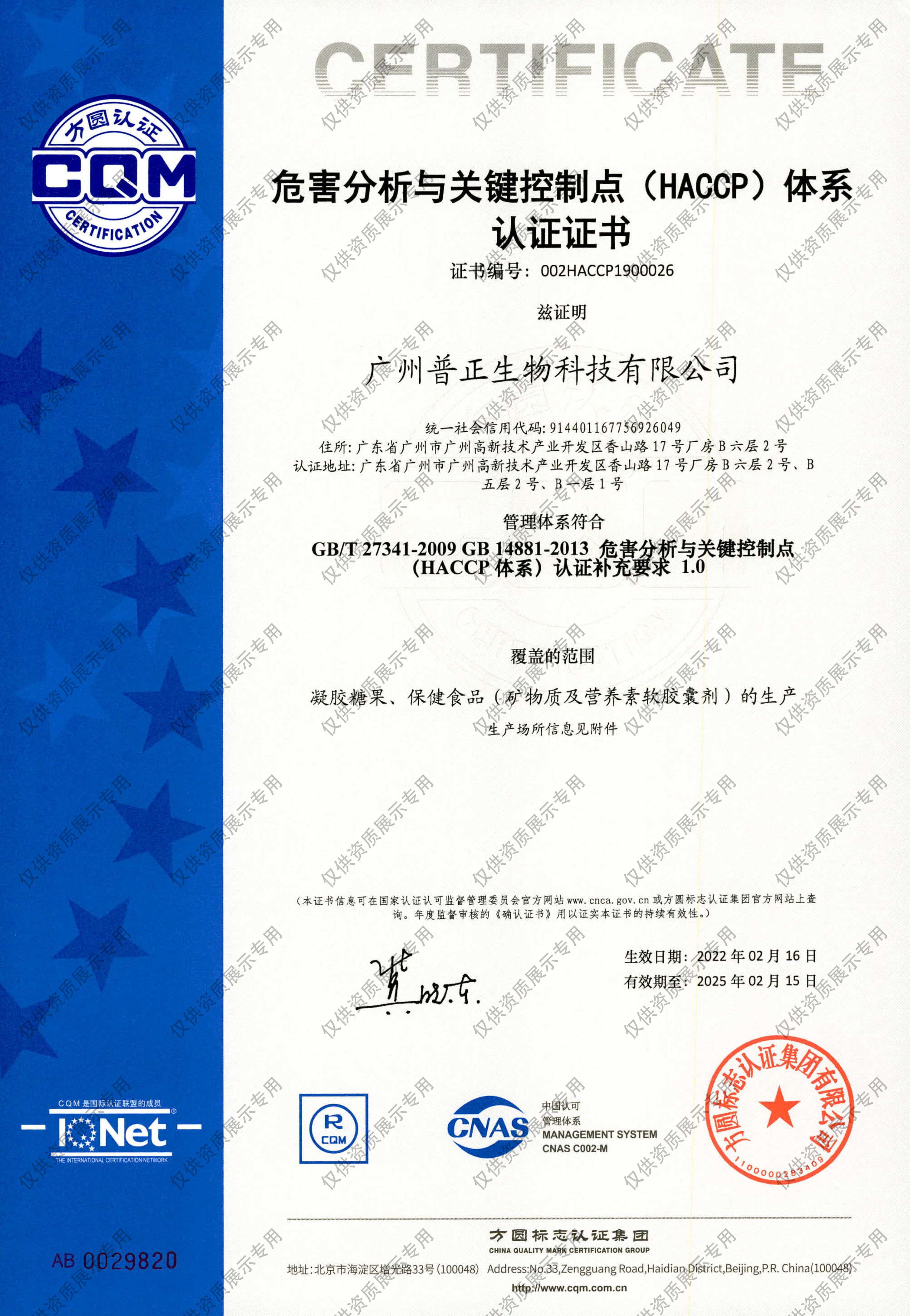 HACCP生產(chǎn)管理體系認證