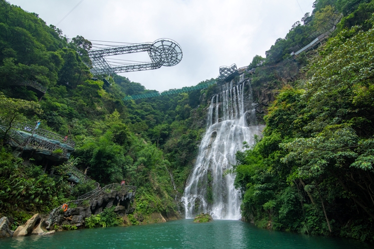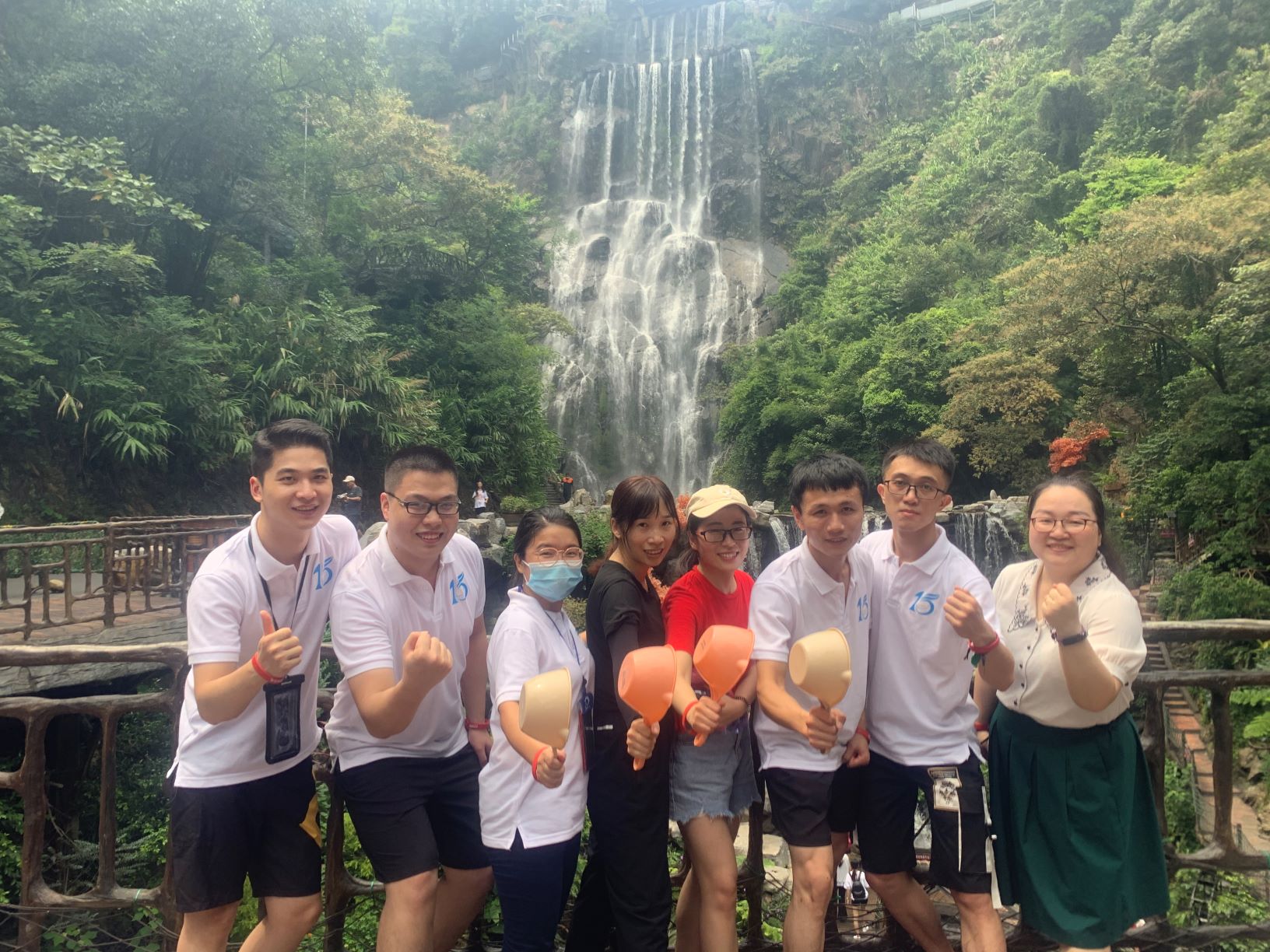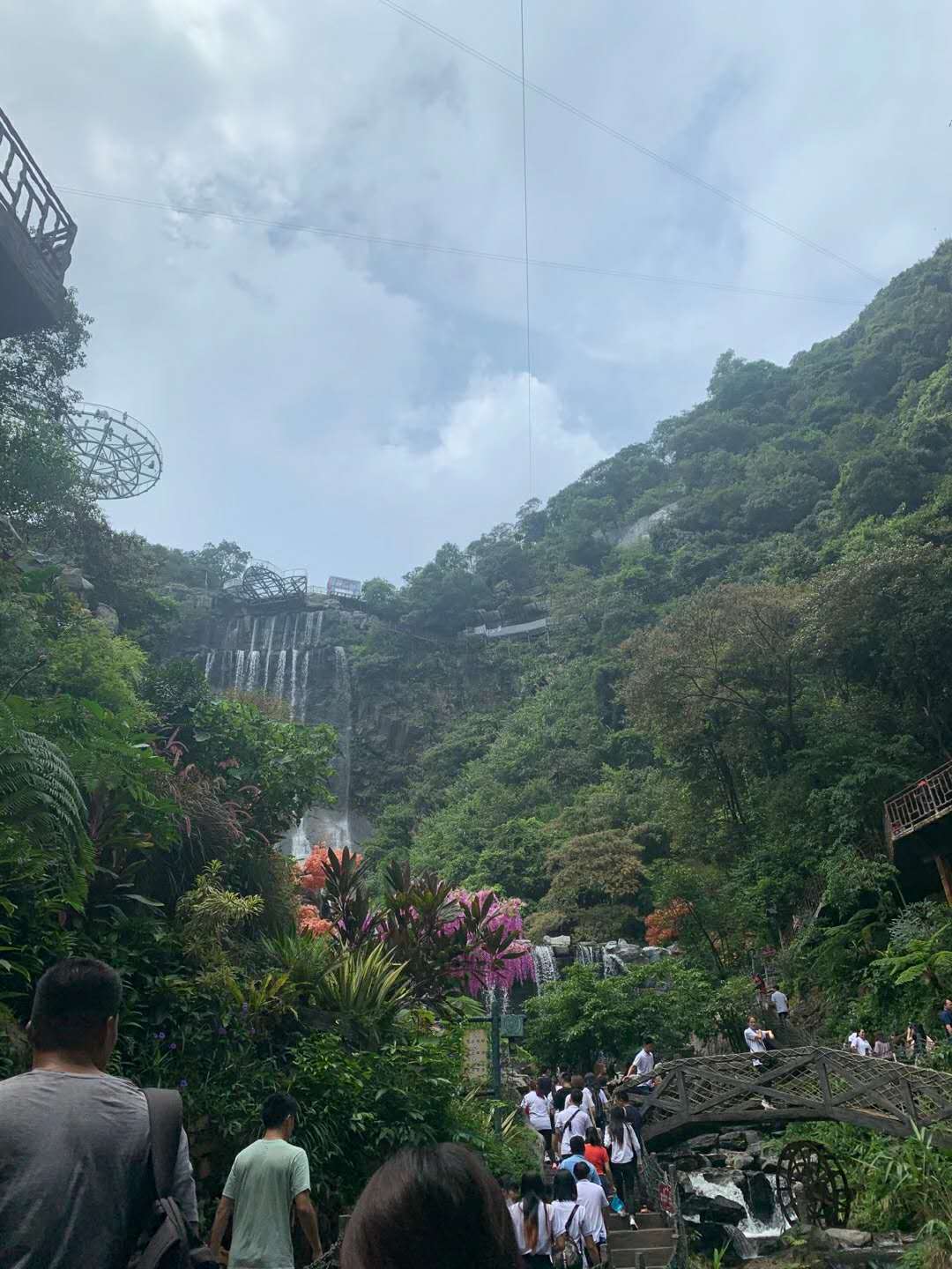 第一站是玻璃大峽谷。小伙伴們一路浩浩蕩蕩,沿著林間小路拾級而上,這里樹木郁郁蔥蔥,層層疊疊的深綠淺綠令人應(yīng)接不暇,再加上無數(shù)白練飛漱其間,水霧彌漫,清幽醉人。帥哥美女們一路談笑風(fēng)生,一路擺拍錄影,想把滿山的美景和此時此刻的好心情定格帶回家!