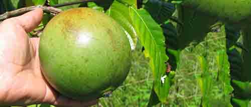 寶樂果粉取自寶樂果,也叫博羅霍,西班牙語為Borojo。它是一種生長在南美洲厄瓜多爾和哥倫比亞熱帶雨林地區(qū)的水果??礃幼用矗涿膊粨P,和番石榴差不多模樣,不過個頭稍大。直徑達7-12cm,還沒有成熟時呈綠色,成熟時轉為茶褐色,重量有五六個蘋果那么重,果肉柔軟多籽。味道酸澀粘稠。