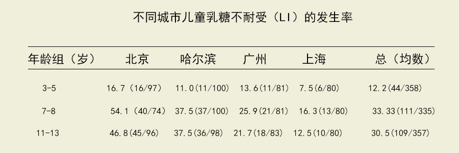 小孩子發(fā)生這種癥狀并不少見。1999年中國營養(yǎng)學(xué)會楊月欣等在哈爾濱、北京、上海和廣州四大城市對3—13歲兒童隨機(jī)抽取1168名,進(jìn)行乳糖不耐測試,結(jié)果表明, 我國兒童乳糖不耐缺乏(LD)的發(fā)生率有隨年齡增長而升高的趨勢,發(fā)生率在兩位數(shù)以上。
