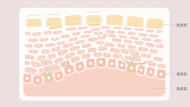 下面是一張人體的皮膚結構圖。在正常情況下,皮膚底部的基底層會不斷生成角蛋白細胞,然后不斷移動最終脫落。與此同時,同樣位于基底層的黑色素細胞會通過絡氨酸酶不斷制造黑色素,轉移進角蛋白細胞,搭起了“便車”。