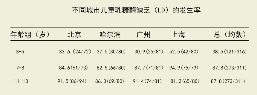 小孩子發(fā)生這種癥狀并不少見。1999年中國營養(yǎng)學(xué)會楊月欣等在哈爾濱、北京、上海和廣州四大城市對3—13歲兒童隨機(jī)抽取1168名,進(jìn)行乳糖不耐測試,結(jié)果表明, 我國兒童乳糖不耐缺乏(LD)的發(fā)生率有隨年齡增長而升高的趨勢,發(fā)生率在兩位數(shù)以上。